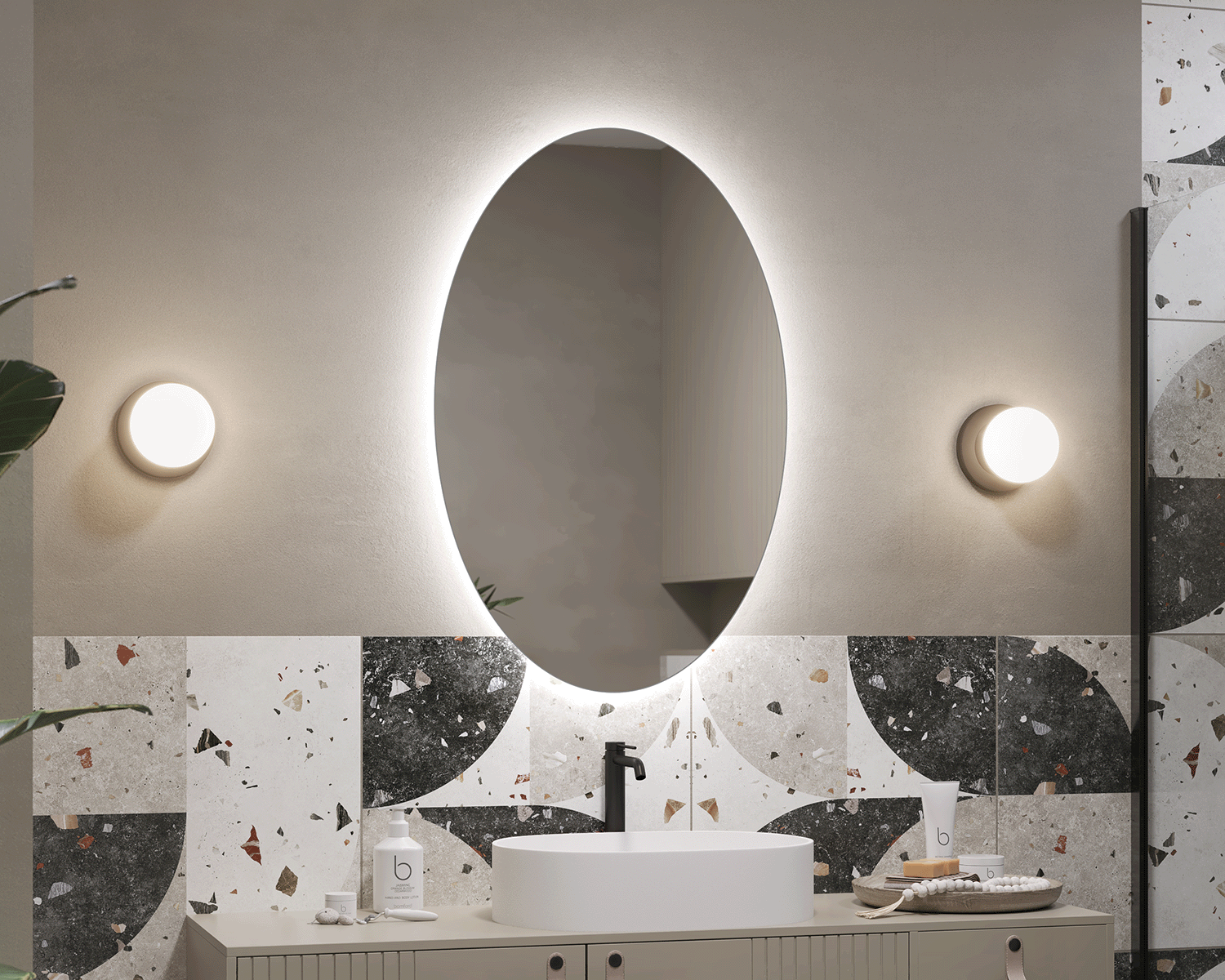 The Glanzo mirror is a unique oval mirror that perfectly combines modernity with subtle elegance. Its delicate illumination creates a pleasant aura, emphasizing the Scandinavian loft style and bringing warmth and harmony to the interior.