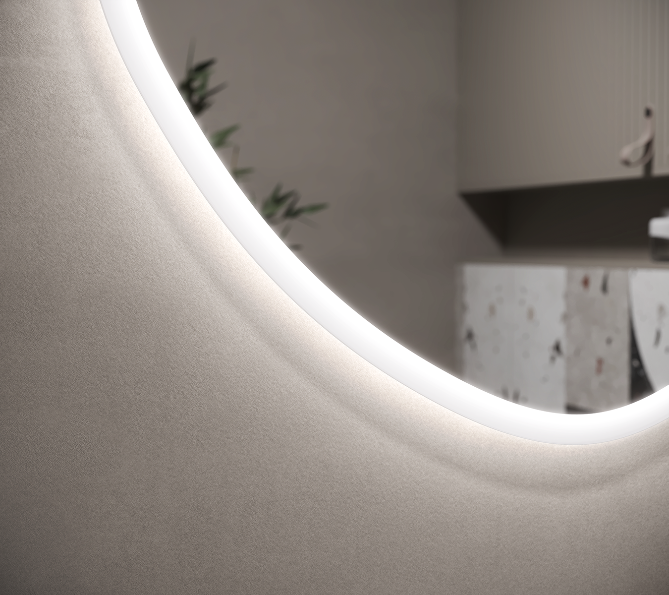 The Parin Lite mirror is unique This irregular mirror captivates with its distinctive shape and subtle elegance. Thanks to its delicate illumination, it creates a pleasant atmosphere, adding warmth and a modern character to the interior.
